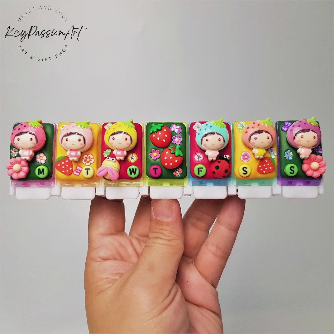 The small alphabets beads and the tiny decoration may not be the same colours as shown in our featured images when you order. We will ensure to match all of the them to the design of this pill box. You can rest assured that the main characters of the design will not be compromised.